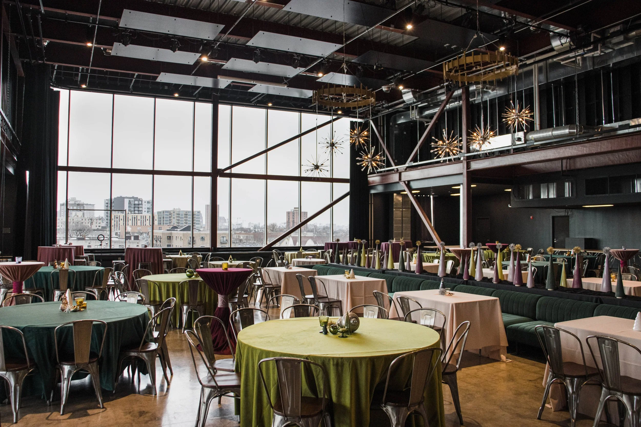 The newly renovated Jan Serr Studio is an industrial meets modern events space located on the top floor of UWM’s Kenilworth Square East building. Floor-to-ceiling windows (over 60 feet wide and 30 feet tall) and a private covered balcony offer unbeatable ambiance and panoramic views stretching all the way from Lake Michigan to Milwaukee’s Downtown Skyline.